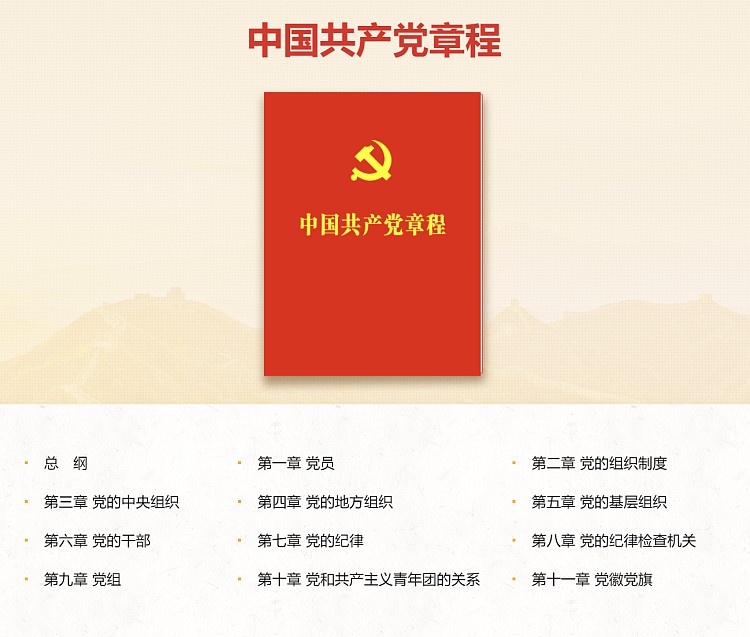 第二條 中國共產(chǎn)黨黨徽為鐮刀和錘頭組成的圖案。中國共產(chǎn)黨黨旗為旗面綴有金黃色黨徽?qǐng)D案的紅旗。