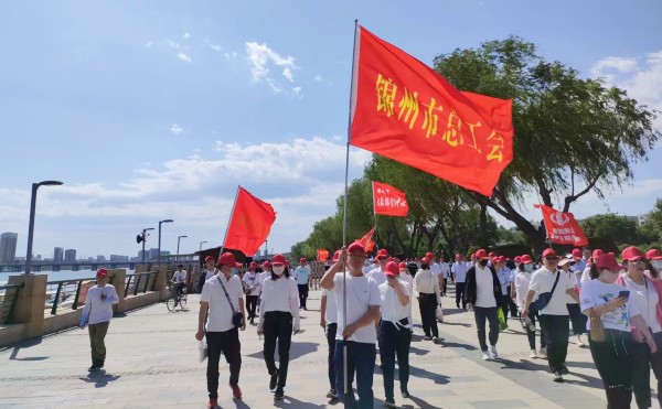 盛夏時(shí)節(jié)驕陽(yáng)似火,市總工會(huì)黨員干部統(tǒng)一著裝,列隊(duì)待發(fā),隨著主席臺(tái)上聲聲鳴笛,以飽滿的精神狀態(tài)沿著總書記走過的路大步前行。大家走在治理之后的小凌河兩岸,欣賞著天藍(lán)、水清、岸綠的美麗景象,一路暢談錦州貫徹習(xí)近平生態(tài)文明思想的實(shí)踐成果,一路感受習(xí)近平總書記對(duì)錦州人民的深情牽掛和親切關(guān)懷。