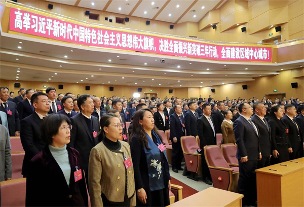 市領(lǐng)導(dǎo)王心宇、于鵬、劉魁毅、陳凱、張大軍、劉希明、楊旭、李金兵、張猛、繆徵閣、蔣立新、宋曉東、孫志海、王曉科、楊林、王秀錦、徐鑫、馮長(zhǎng)偉、蘇貴宏、周立軍、謝麗和大會(huì)主席團(tuán)成員在主席臺(tái)就座。