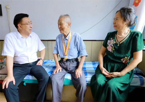 8月20日,市委書記劉克武來到我市97歲抗戰(zhàn)老同志史立行家中,為他送達“中國人民抗日戰(zhàn)爭勝利80周年”紀念章,與老同志親切交流并致以崇高敬意和誠摯問候,感謝他們?yōu)辄h和人民作出的突出貢獻。
