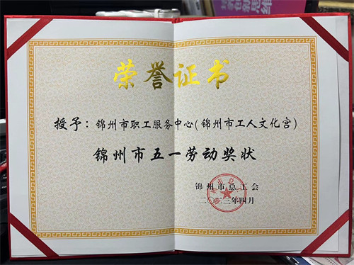4月25日,2023年錦州市五一勞動獎表彰大會暨錦州市總工會服務振興發(fā)展、加強職工創(chuàng)新創(chuàng)造工作推進大會在市工人文化宮隆重召開。在大會上,錦州市職工服務中心(錦州市工人文化宮)獲得了錦州市總工會頒發(fā)的“五一勞動獎狀”榮譽稱號。