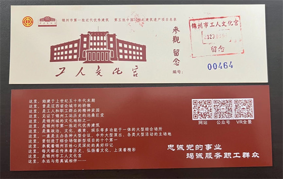 在參觀工業(yè)印記展覽后,大廳里又一次掀起了火熱的氛圍。這是錦州市工人文化宮特意為每一名參加活動(dòng)的人員精心設(shè)計(jì)制作的紀(jì)念卡,簡(jiǎn)單的文字介紹了文化宮的歷史與傳承、幾個(gè)二維碼是內(nèi)容的延伸,可以通過(guò)手機(jī)識(shí)別欣賞VR全景、網(wǎng)站、微信服務(wù)號(hào)、從不同的角度和渠道獲取所了解的資源。