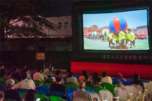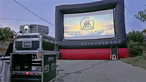 9月17日晚,夜空的星斗剛剛露出笑臉,早已架設(shè)好的電影屏幕上就播放著習(xí)近平總書記來錦州視察、錦州城市宣傳片、凌海市2023職工趣味運動會、紅色歌曲MV、大決戰(zhàn)之解放錦州精剪鏡頭。工會干部、企業(yè)一線工人、廣大職工群眾圍坐在一起,七點整,一場點單式數(shù)字電影《滿江紅》精彩上演!這是錦州市工人文化宮電影放映隊走進凌海市總工會大院的場景。