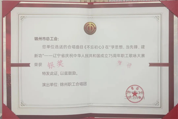 本次大賽匯聚了全省各地17支精英代表隊(duì),共計(jì)兩千五百余名參賽者,他們用嘹亮的歌聲詮釋了遼寧職工匯聚的磅礴力量,表達(dá)了對(duì)偉大祖國的深沉熱愛和崇高敬意。其中,錦州市總工會(huì)精心選拔組建的職工合唱團(tuán)憑借一曲深情演繹的《不忘初心》,榮獲大賽銀獎(jiǎng)。
