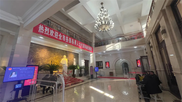 在場地布置上,文化宮工作人員全力配合市人大常委會和市政協(xié)會務組精心設計,每一塊屏幕、展板、條幅、標識等都展現(xiàn)出莊重與大氣,營造出嚴肅而又熱烈的會議氛圍。